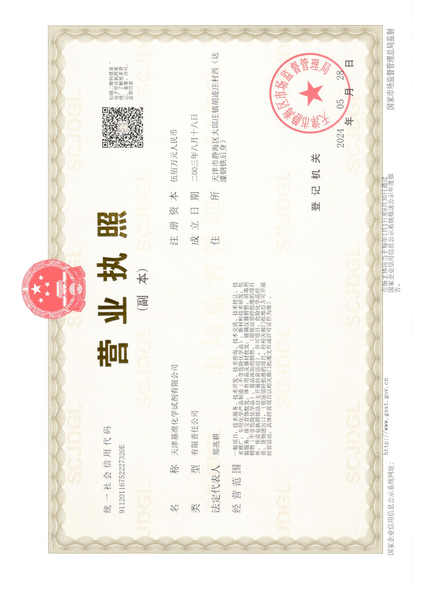 天津基準(zhǔn)化學(xué)試劑有限公司成立于2003年,是一家集研發(fā)、生產(chǎn)、銷售于一體的化工企業(yè),我們致力于為生物醫(yī)藥、精細(xì)化工、食品工業(yè)、